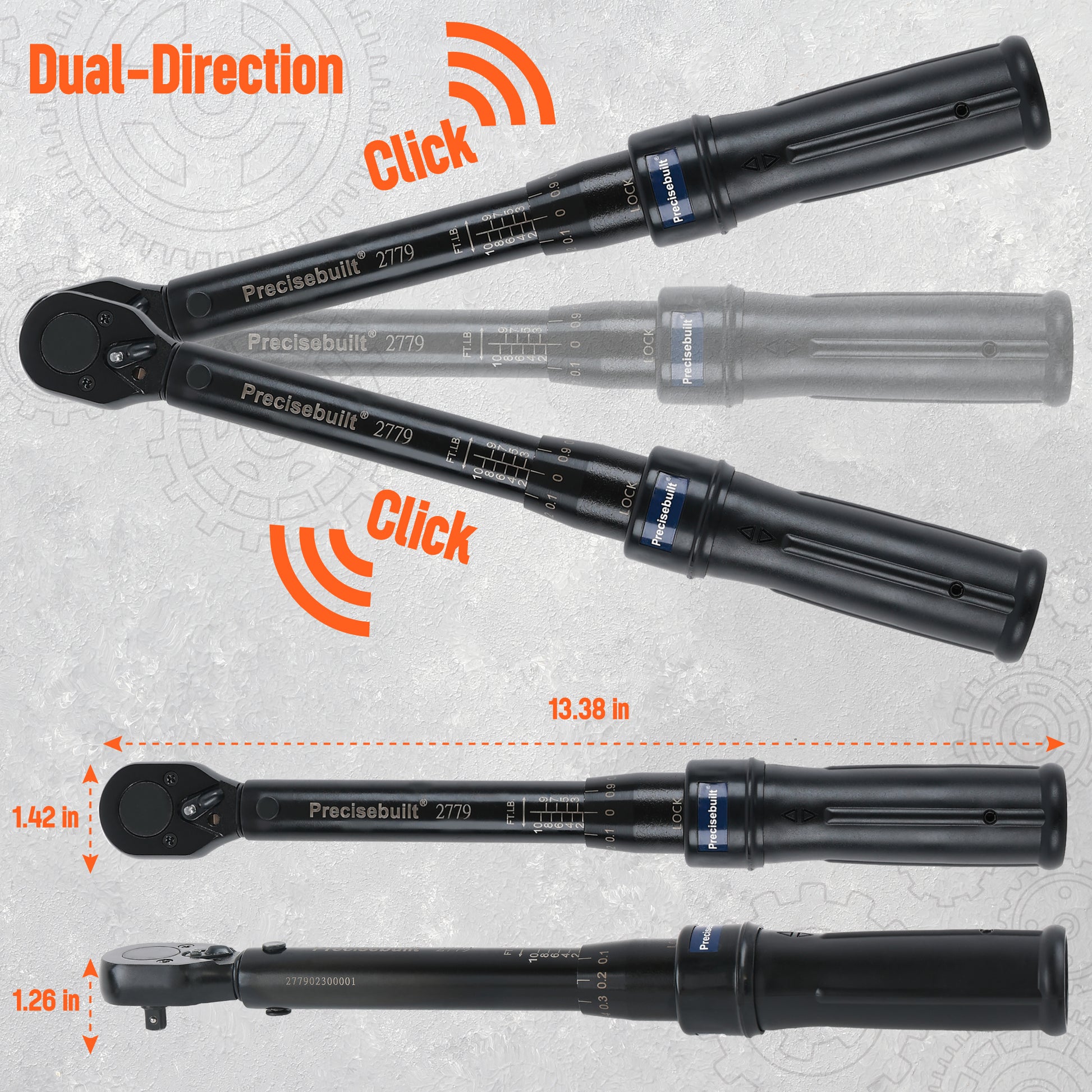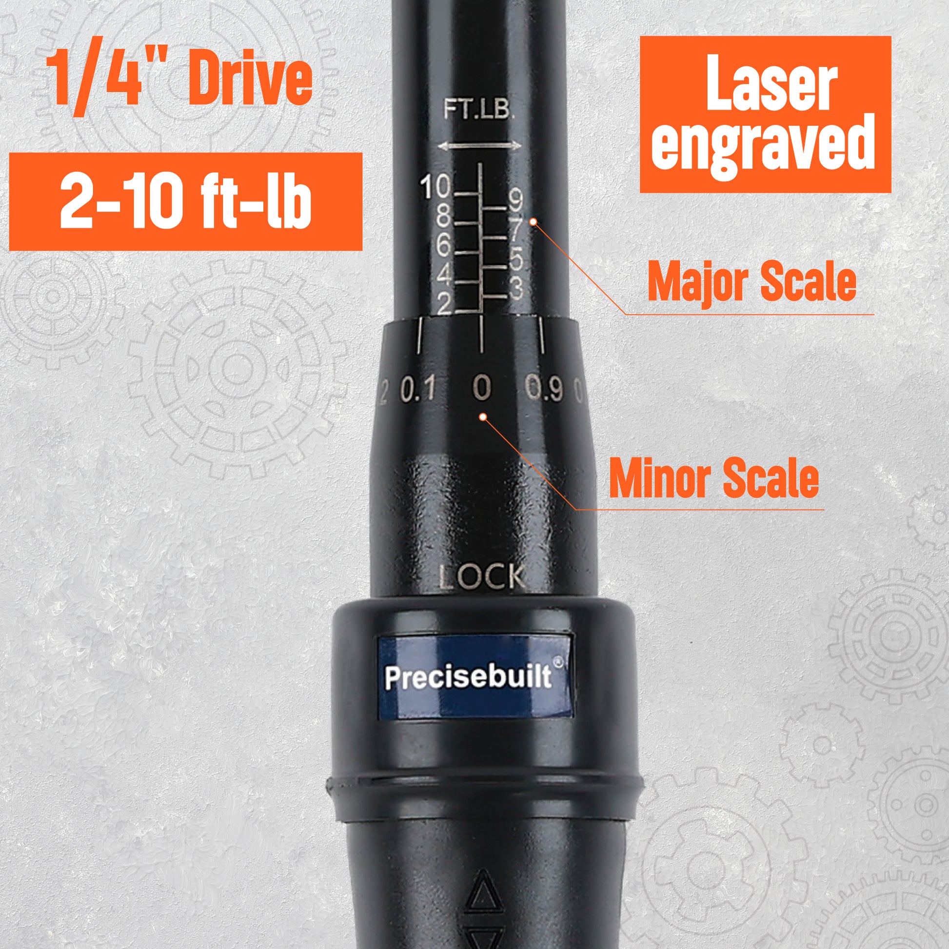 - Precise Operation & Dual-Direction Click: 1/4" Drive. 2-10 ft-lb. Tested for +/-2% in-factory calibration and accurate up to +/-4% clockwise and +/-6% counterclockwise. Meets ASME B107.300 standards and comes with a calibration certificate.